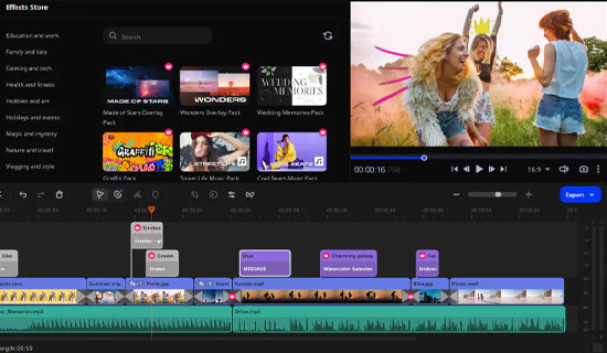②内置模板和特效,节日视频、旅行Vlog都有对应的预设